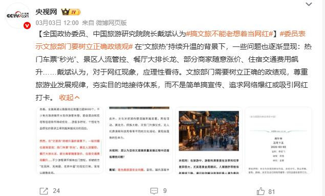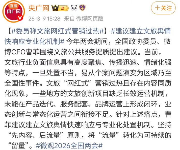 而曹菲委员的提案还包括加强官方文旅账号专科运营,把文旅“流量”漂流为“留量”。