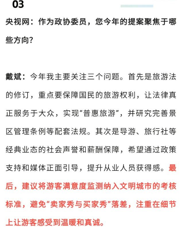 戴斌委员的提案,之是以能激勉共识,是因为说中了大多量游客的旅游体验。