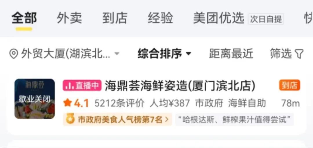 海鼎荟厦门店“停业休养”