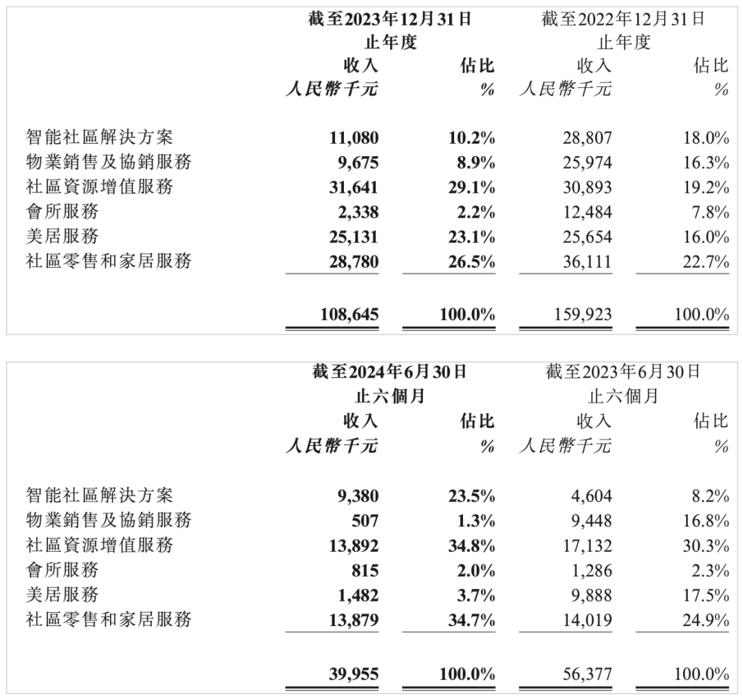 2022年、2023年,好意思居做事孝顺营收2565.4万元、2513.1万元,同比有所下滑,但波动较小。不外2024年上半年,该项业务的收入约为148.2万元,较2023年同期的988.9万元大幅下滑超85%。