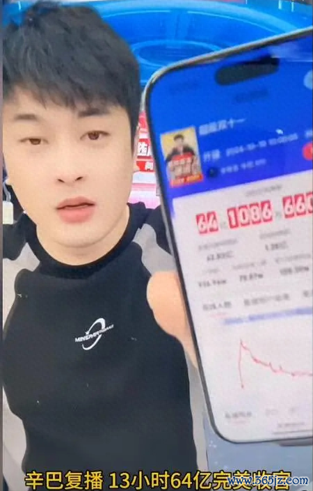 在长达13个小时的卖力带货下,辛巴创下64亿元的销售佳绩。