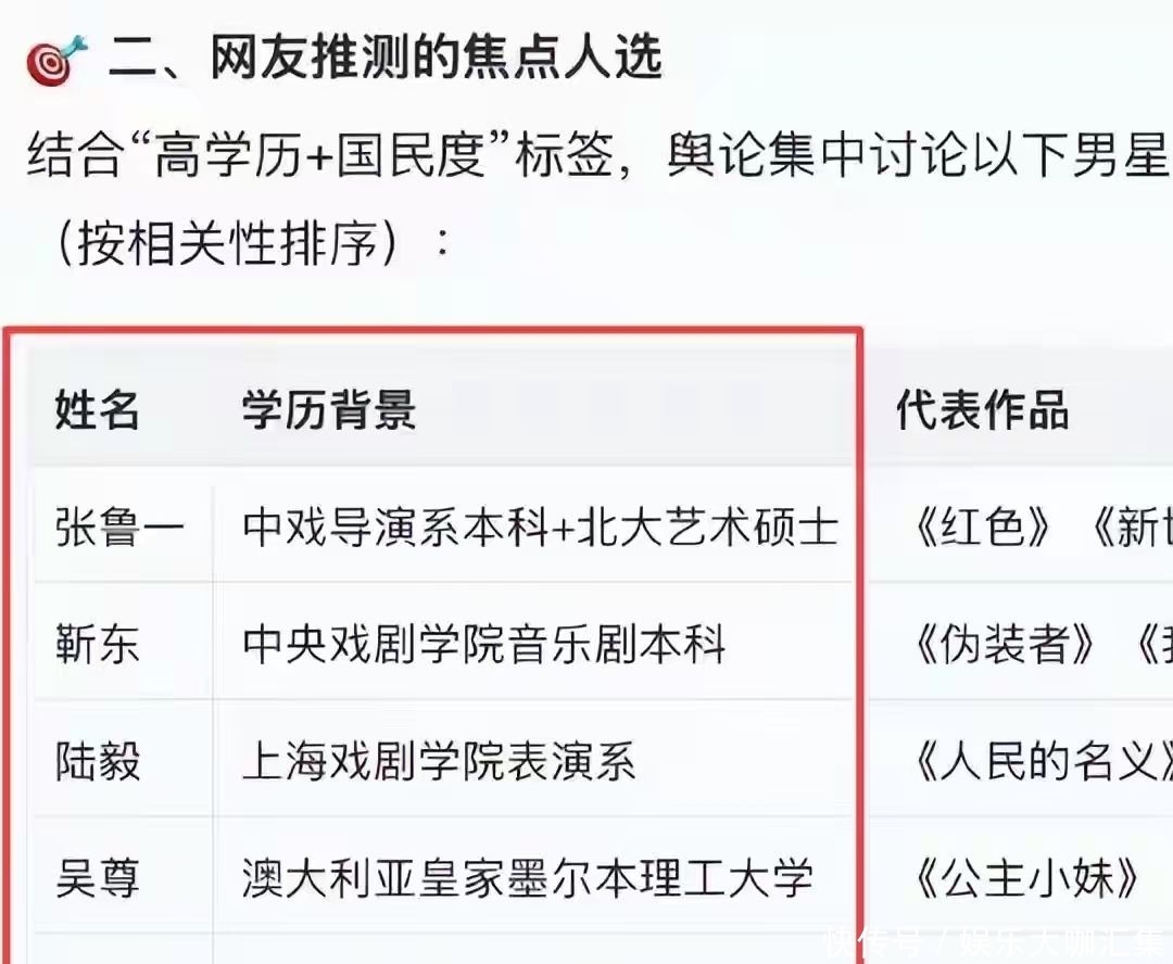 若要筛选合适“高国民度、有妃耦、学历出众”的男艺东谈主,边界看似闲居,但细细梳理后仍能圈定几位重点东谈主选。